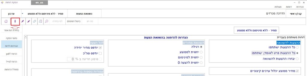 12. כדי לחזור למסך ההצעות, לוחצים על כפתור “חץ מעלה” הסגול שמעל הסרגל השמאלי: