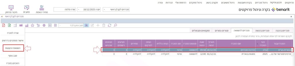 25. בעקבות פעולת הסגירה, המכרז עובר מלשונית “מכרזים להשוואה” ללשונית “סגורים-גמורים” במסך “מכרזים לקבלן ראשי“: