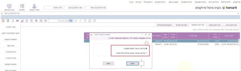 כאשר שורת הקבלן מסומנת לוחצים על “בחירה“: