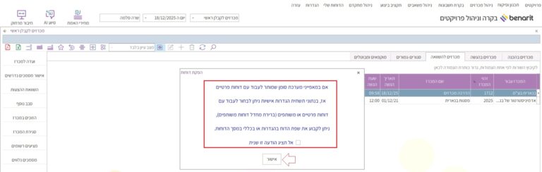 אם קופצת הודעה לגבי האפשרות לעבוד עם “דוחות פרטיים”, ללחוץ על “אישור“: