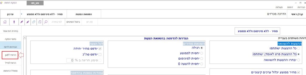 6. נפתח המסך “הפקת דוחות“. ללחוץ בסרגל השמאלי על “הדוח לpdf“:
