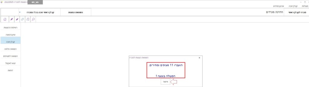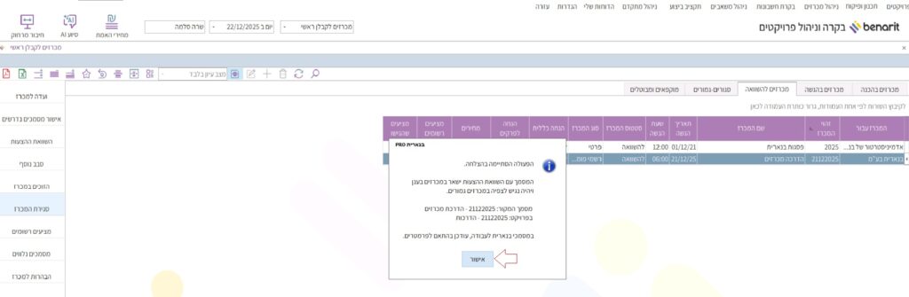 24. מתקבלת הודעה על סיום הפעולה בהצלחה. לוחצים על “אישור“:
