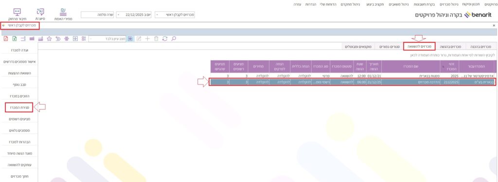 21. תחת הלשונית “מכרזים להשוואה” מסמנים את המכרז שאותו רוצים לסגור ולוחצים בסרגל השמאלי על הכפתור “סגירת המכרז“: