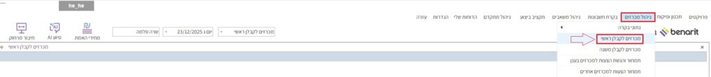 1. משורת התפריטים העליונה במסך הראשי של בנארית לבחור בתפריט “ניהול מכרזים” > “מכרזים לקבלן ראשי“:
