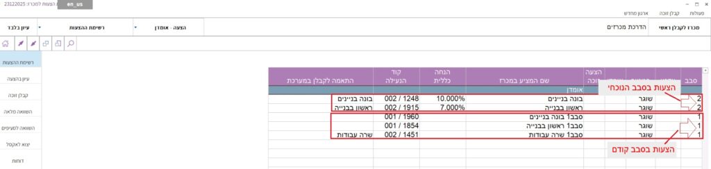ההצעות המעודכנות שהוגשו על ידי הקבלנים בסבב החדש מוצגות כאשר בעמודה “סבב” מופיע מספר הסבב החדש, ובשם המציע אין את המילה “סבב”: