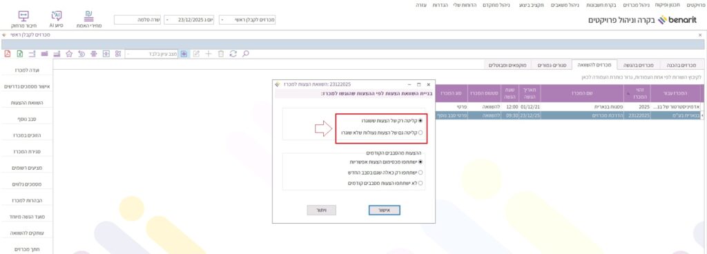 לאחר שסומנו האפשרויות הרצויות בשתי קבוצות הפרמטרים, יש ללחוץ למטה על “אישור“:
