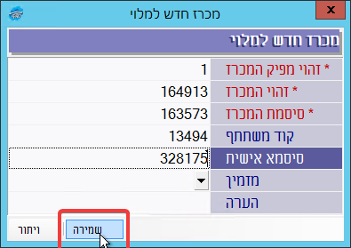 (5) פרטי המכרז מועתקים לחלונית פרטי המכרז – אפשר לבחור את שם המזמין מרשימת המזמינים של הקבלן. השדות “מזמין” ו”הערה” הם אופציונליים. ללחוץ על “שמירה”: