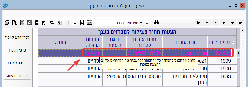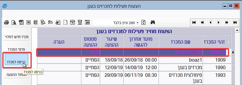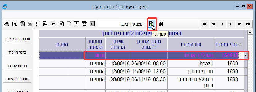 (13) במסך “מילוי הצעות למכרזים בענן”, לוודא שהמכרז החדש מסומן וללחוץ בסרגל הכלים העליון על הכפתור “רענון מסך”: