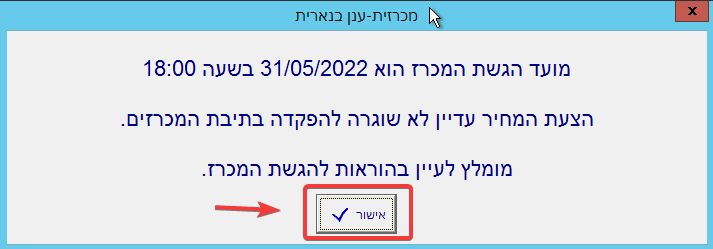 (9) אם מתקבלת המלצה להשתמש בכלי התמחור של התוכנה, ללחוץ על “אישור”: