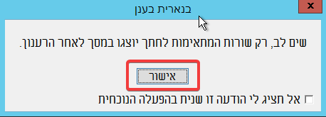 (14) מופיעה הודעה המתריעה על כך שלאחר הרענון יוצגו במסך רק שורות המתאימות לחתך.