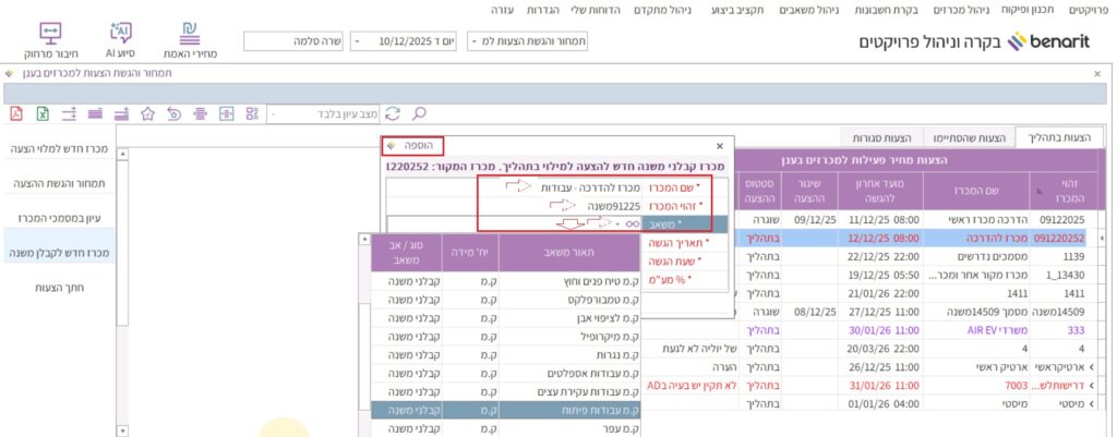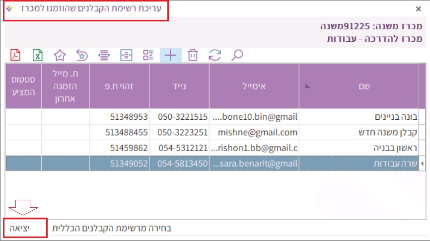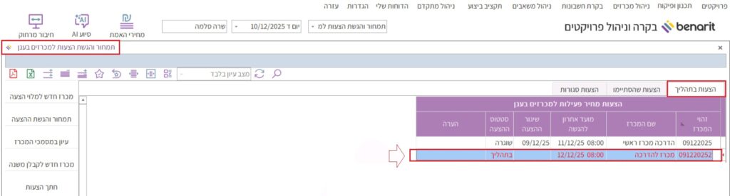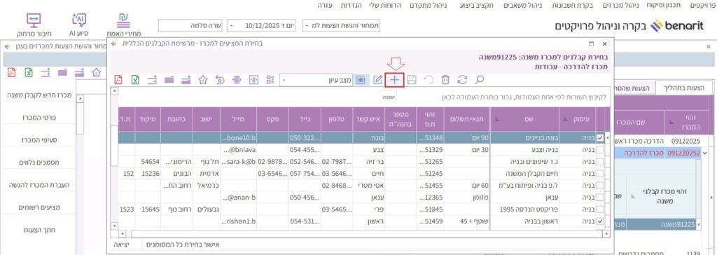 אם לא מופיע ברשימה קבלן משנה שרוצים להזמין להציע הצעה, יש ללחוץ בסרגל האייקונים למעלה על כפתור ההוספה (פלוס):
