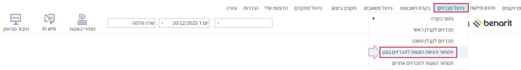 (1) במסך הראשי של בנארית בענן יש להיכנס לתפריט “ניהול מכרזים“, לבחור ב “תמחור והגשת הצעות למכרזים בענן“: