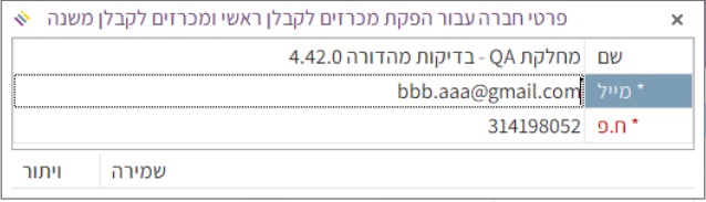 ניתן לשנות את כתובת המייל באופן יזום דרך “ניהול מכרזים”>נתוני בקרה> פרטי חברה עבור הפקת מכרזים. הפרטים נשמרים פר מכרז.