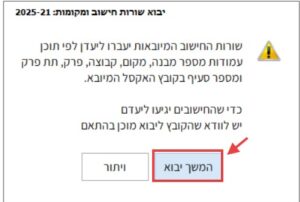 10. בחלונית “יבוא שורות חישוב ומקומות”, לוחצים על “המשך יבוא”.