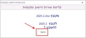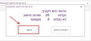 11. בחלונית “קליטת שורות חישוב ומקומות”, לוחצים על “אישור”.