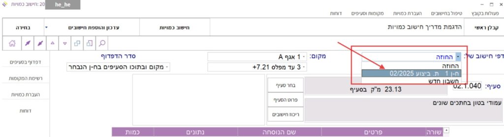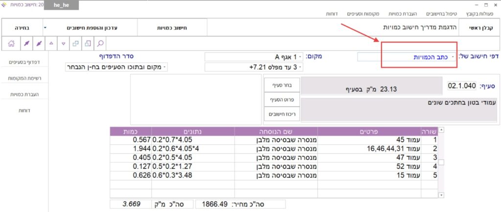 2. בחלונית “דפי חישוב של” בוחרים “כתב הכמויות”: