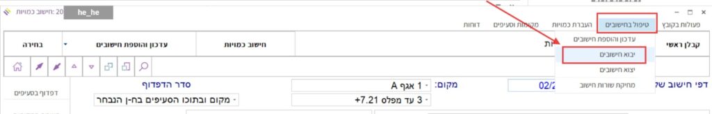 7. נכנסים לתפריט “טיפול בחישובים” > בוחרים בפקודה “יבוא חישובים”: