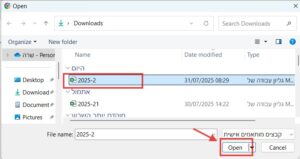 8. בוחרים את קובץ האקסל שיצרנו, המכיל את שורות החישוב ולוחצים על “Open”: