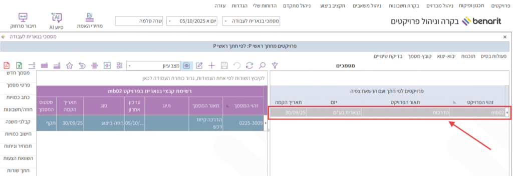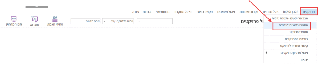 1. במסך הראשי של בנארית, לבחור בתפריט “פרויקטים”> מסמכי בנארית לעבודה: