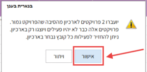 6. מופיעה הודעה על כך שיועברו X פרויקטים לארכיון. ללחוץ על “אישור”: