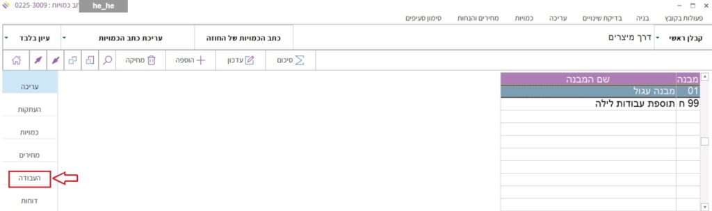 2. נכנסים אל כתב הכמויות ובסרגל השמאלי לוחצים על כפתור “העבודה”: