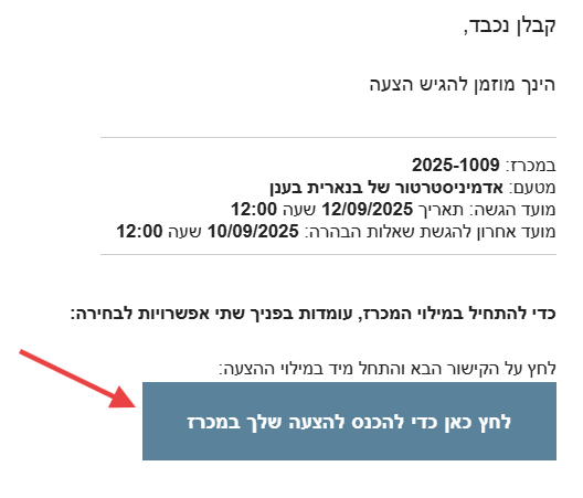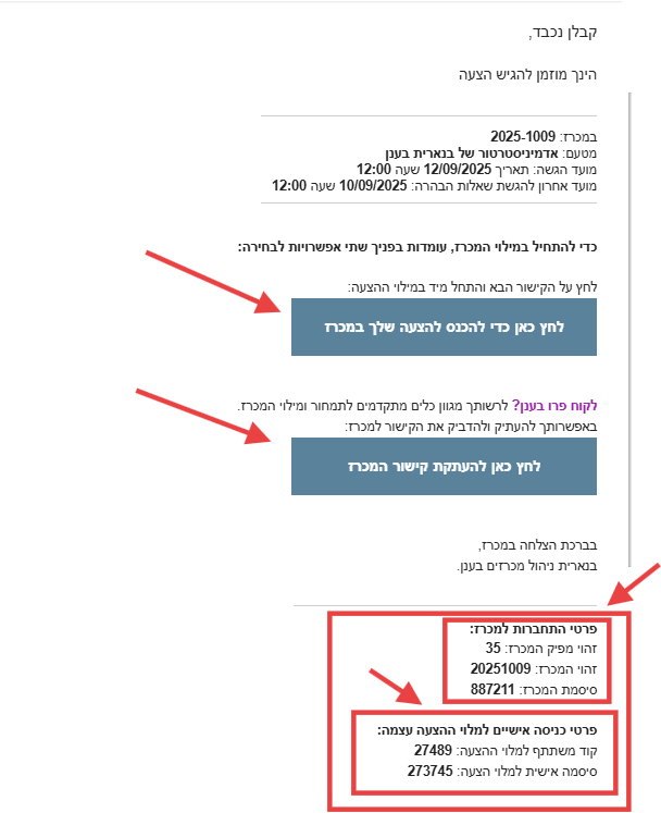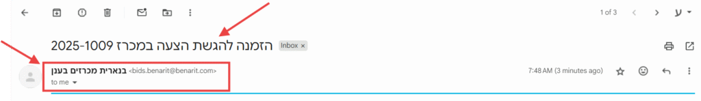 בתיבת הדוא”ל מתקבל מייל הזמנה ובו פרטי המכרז :