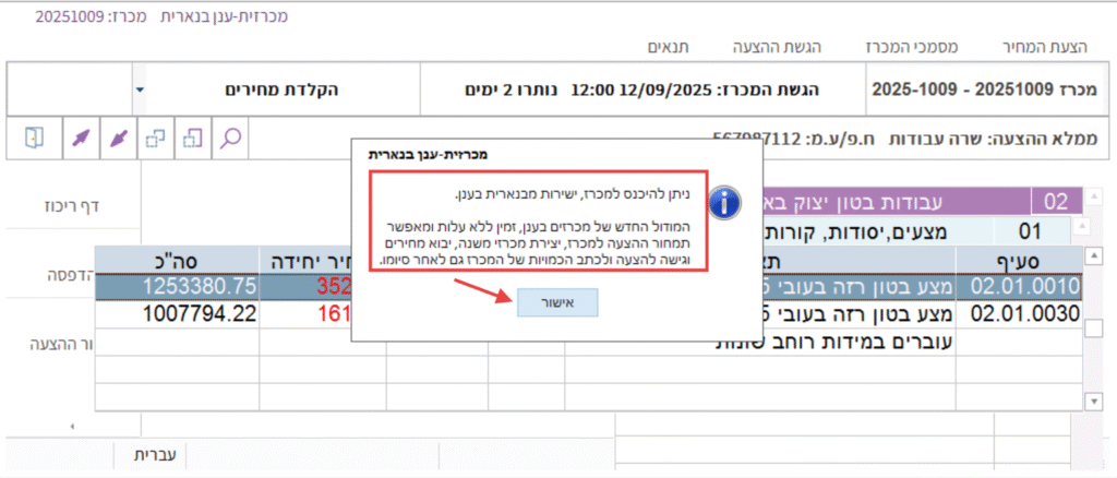 מופיעה הודעה על כך שניתן להיכנס למכרז גם ישירות מבנארית בענן וליהנות מכלי תמחור (מיועד ללקוחות בנארית בענן).