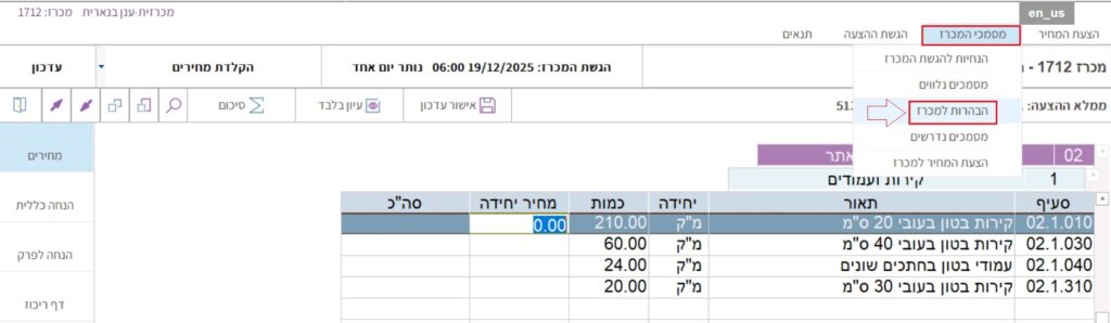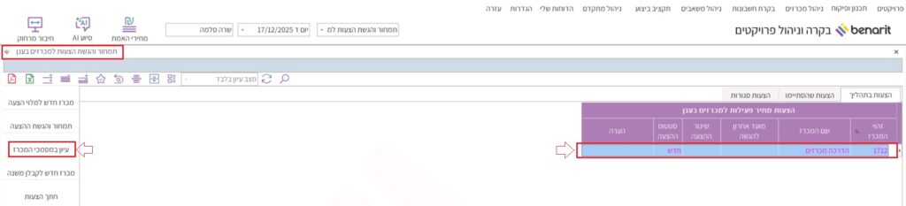 1. לקוח בנארית בענן הממלא הצעת מחיר למכרז בענן: מתפריט “ניהול מכרזים” > “תמחור והגשת הצעות למכרזים בענן”: