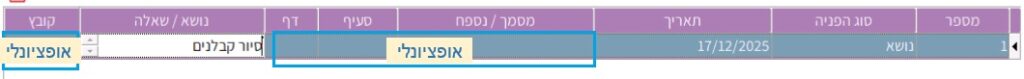 את תוכן השאלה יש לכתוב בשדה “שאלה”.