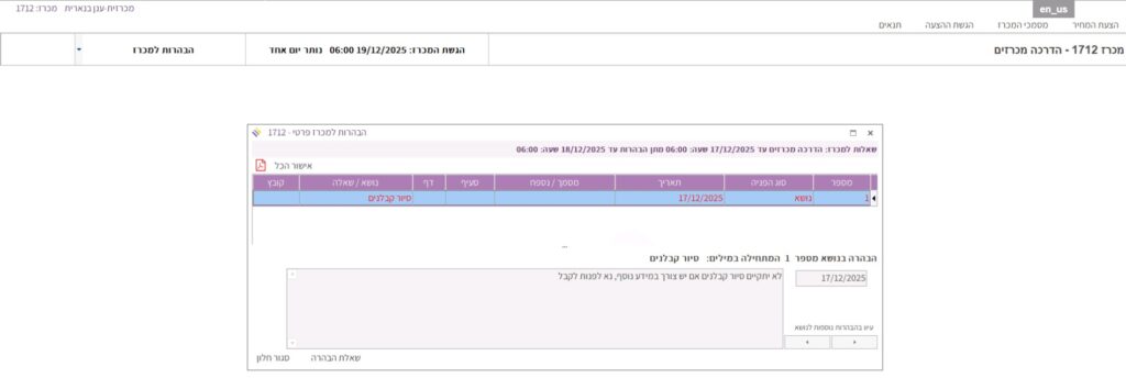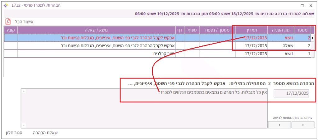 5. נפתחת החלונית “הבהרות למכרז”: