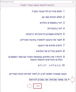 לאישור קריאת כל ההבהרות ניתן ללחוץ על כפתור “אישור הכל” מעל שורות ההבהרה בצד שמאל של החלון: