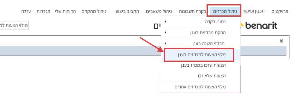 1. לקוח בנארית בענן הממלא הצעת מחיר למכרז בענן: מתפריט “ניהול מכרזים” > “מלוי הצעות למכרזים בענן”: