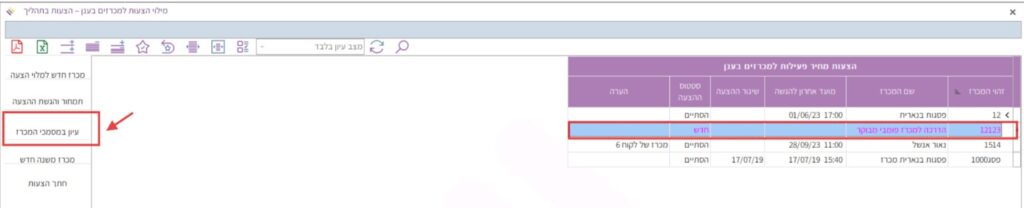 1.1 לסמן את המכרז הרצוי וללחוץ על כפתור “עיון במסמכי המכרז” בצד שמאל: