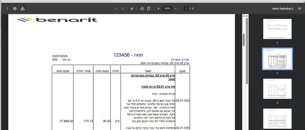 שינוי כיוון ההדפסה (לאורך/לרוחב) של דוח כתב כמויות/חשבון