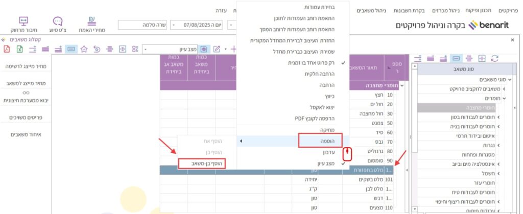 2. ללחוץ לחיצה ימנית בעכבר על המשאב שרוצים להוסיף לו רמה של משאב-בן > להצביע על “הוספה” > ולבחור בפקודה “הוסף בן-משאב”.