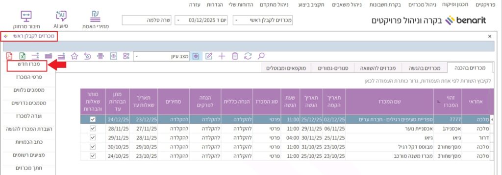 כדי ליצור מכרז חדש לקבלן ראשי, יש לבצע את הפעולות הבאות: