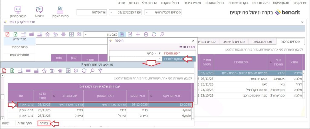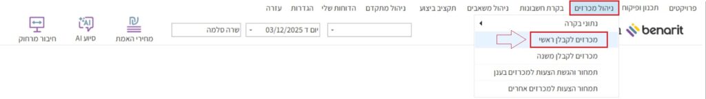 1. במסך הראשי של בנארית פרו להיכנס בתפריט הראשי ל”ניהול מכרזים” > “מכרזים לקבלן ראשי: