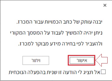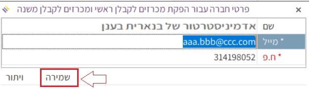 לאחר שוידאנו שהפרטים שמופיעים בחלונית נכונים (שם, מייל, ח.פ.) ללחוץ על “שמירה“: