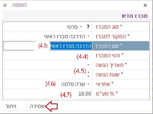 (4.7) בשדה “% מע”מ” יש לוודא שמופיע המע”מ הנכון, ואם לא, להקליד את המע”מ הנכון.