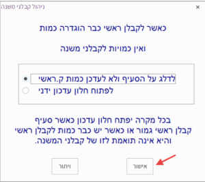 בחלונית הבחירה אנו נשאלים אם לדלג על סעיפים אלו או לאפשר עדכון ידני. יש ללחוץ על “אישור”: