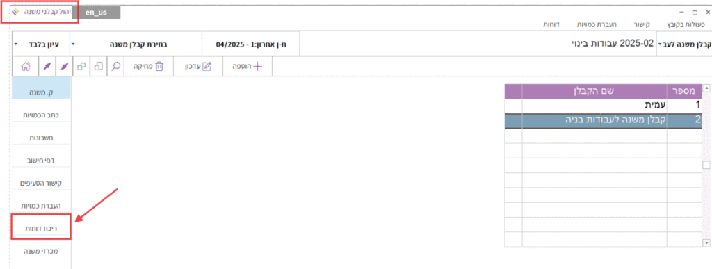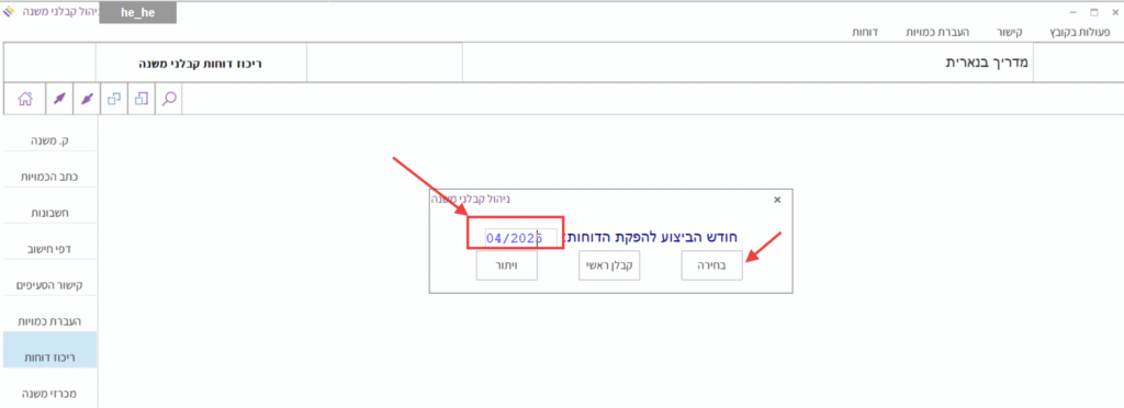 בחלונית “ניהול קבלני משנה”, מקלידים את חודש הביצוע ולוחצים על “בחירה”: