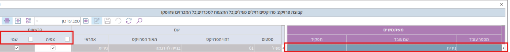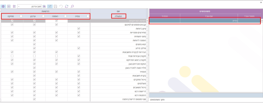 יש לסמן את שם המשתמש הרצוי- ובצד שמאל במסך לתת הרשאת צפיה ו /או שינוי רויקטים הרלוונטים.