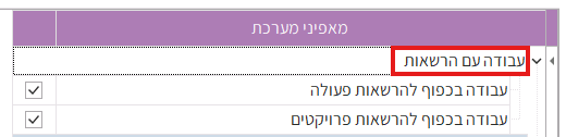 ניתן לבחור רק בעבודה בכפוף להרשאות פרויקטים, או רק להרשאות פעולה.