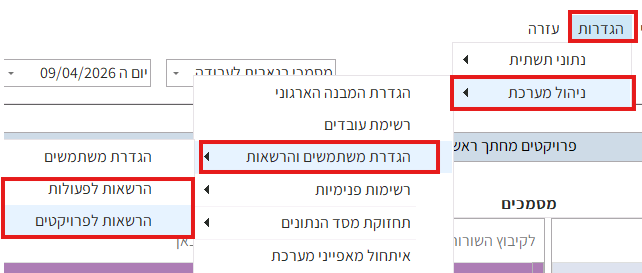 דוגמא לעבודה עם הרשאות פרויקטים: