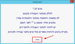 8. אם מופיעה הודעה לגבי אי התאמה של חלק מנתוני העבודה, יש ללחוץ על “אישור”.