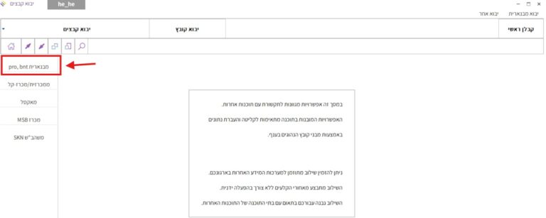 4. בצד שמאל למעלה ללחוץ על הכפתור “מבנארית pro, bnt”: