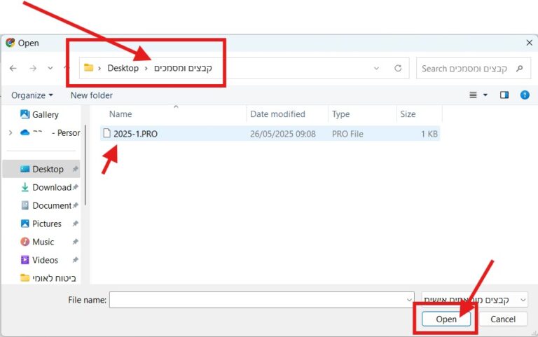 יש לסמן את הקובץ שרוצים לייבא וללחוץ על “Open”: