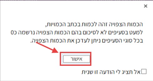 2. מתקבלת הודעה על שהכמות הצפויה בתמחיר תהיה זהה לכמות בכתב הכמויות. לוחצים על “אישור”:
