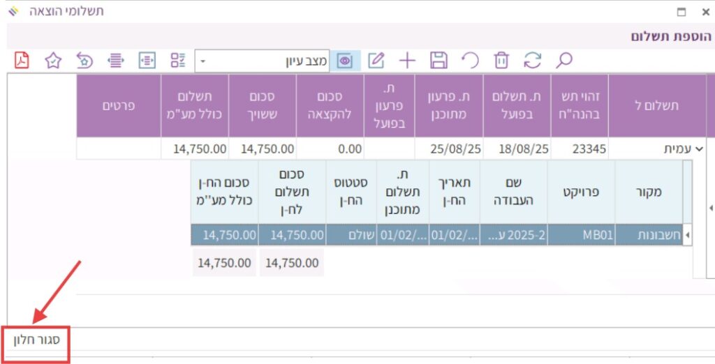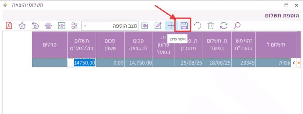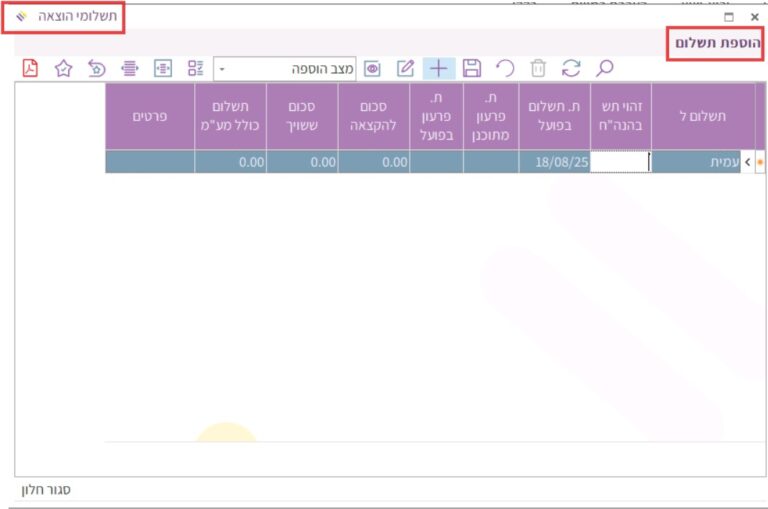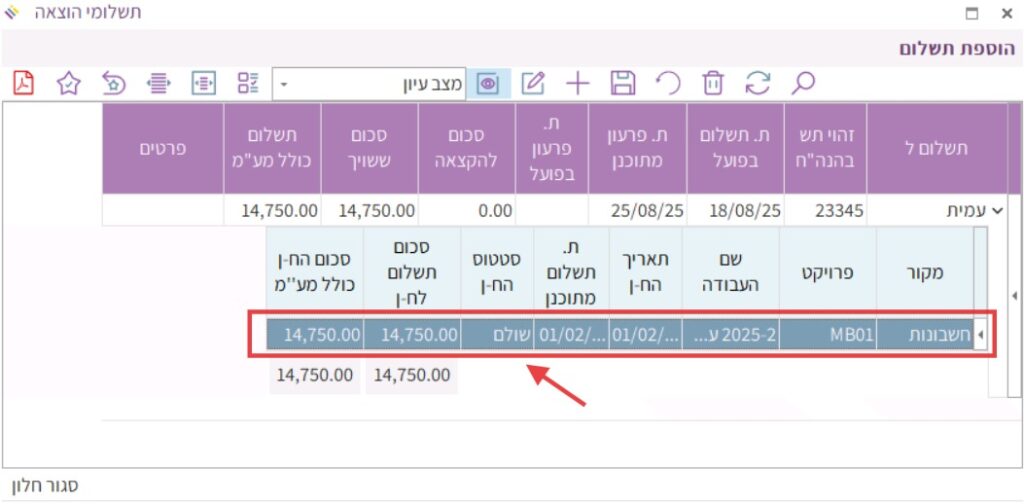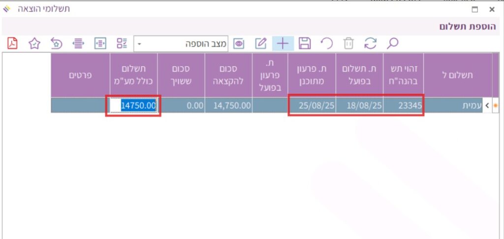 – בשדה “ת. תשלום בפועל” יש להזין את התאריך שבו הוצא התשלום בפועל.