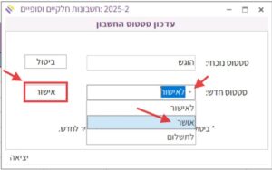 אם החשבון לא נמצא בסטטוס “אושר”, יש להעבירו לסטטוס אושר באופן הבא: